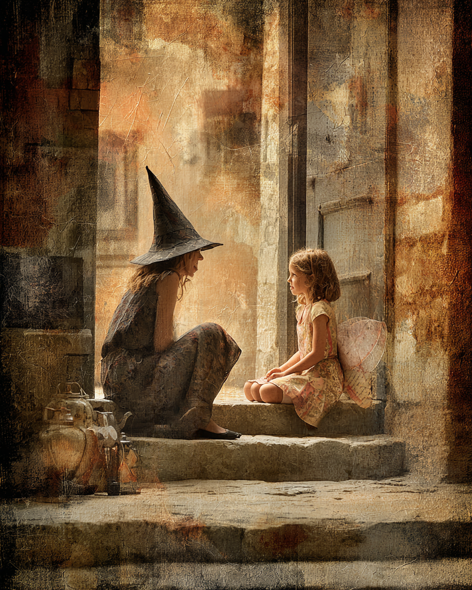 Witch Hanging Out with Young Girl Art Print