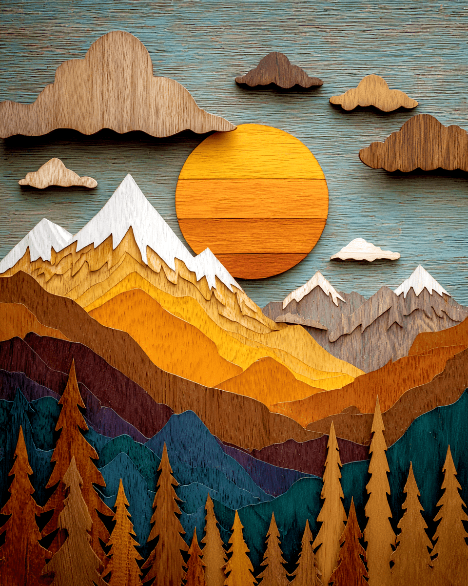 Wood Relief Style Mountains Nature Home Decor Wall Art