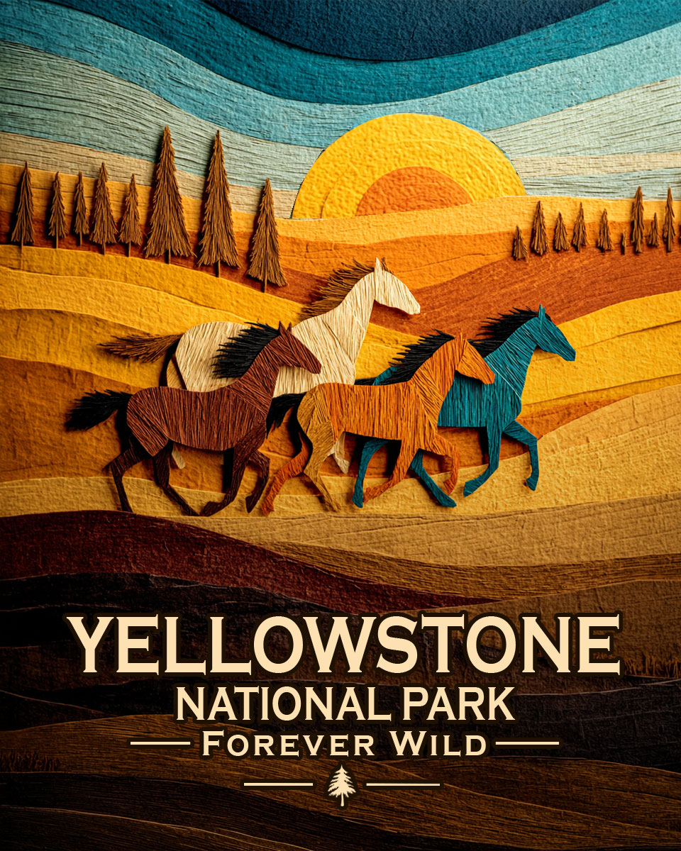 Yellowstone National Park – Forever Wild Horse Scene Souvenir Art Print