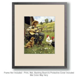 Vintage Style Young Cowboy Playing Guitar on the Range – Western and Southwestern Home Decor Wall Art Prints