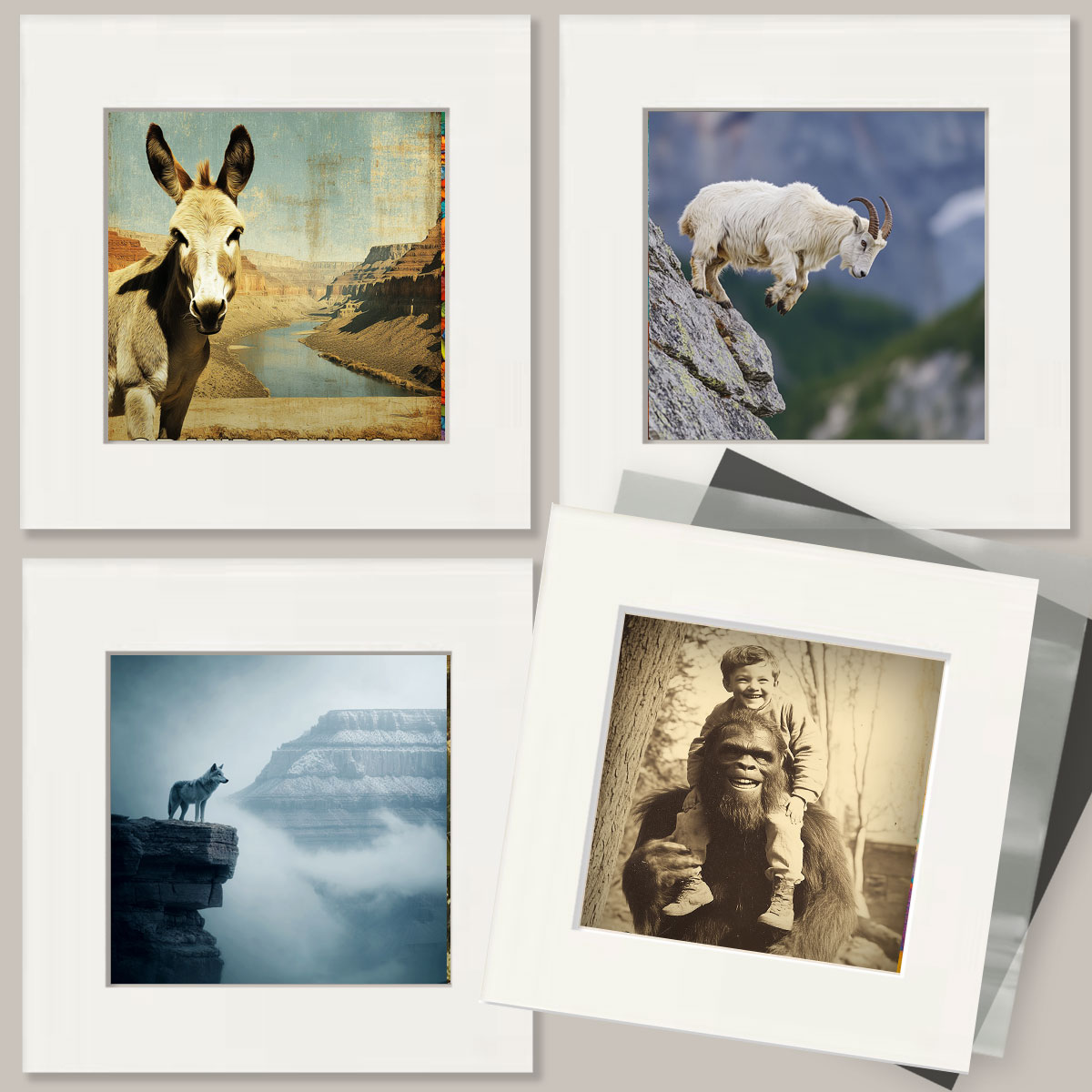 All prints have an acid-free matte with a cardboard backing board and are packaged in a clear protective bag.