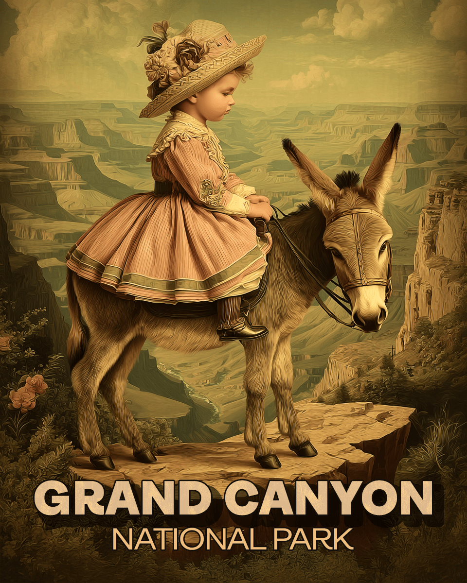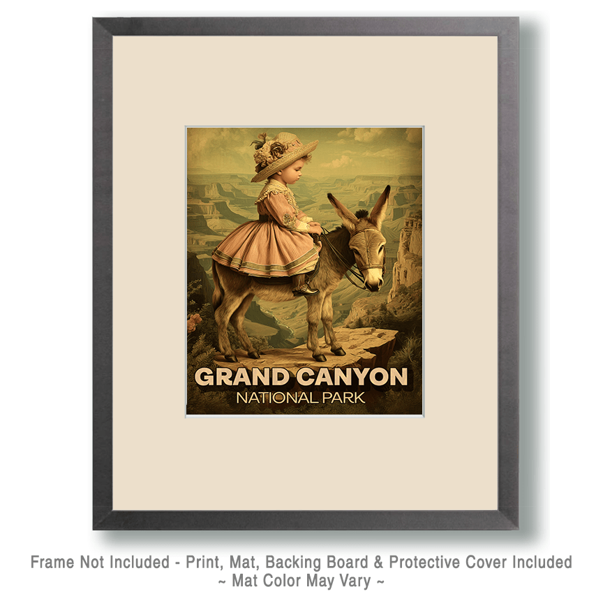 Young Cowgirl on a Donkey Grand Canyon Souvenir Art Print – 8″x10″ Artwork