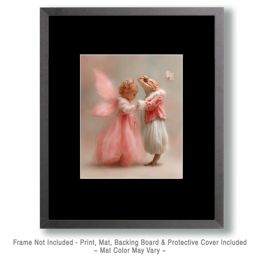 Young Fairy Dancing with Her Toad – Whimsical Wall Art