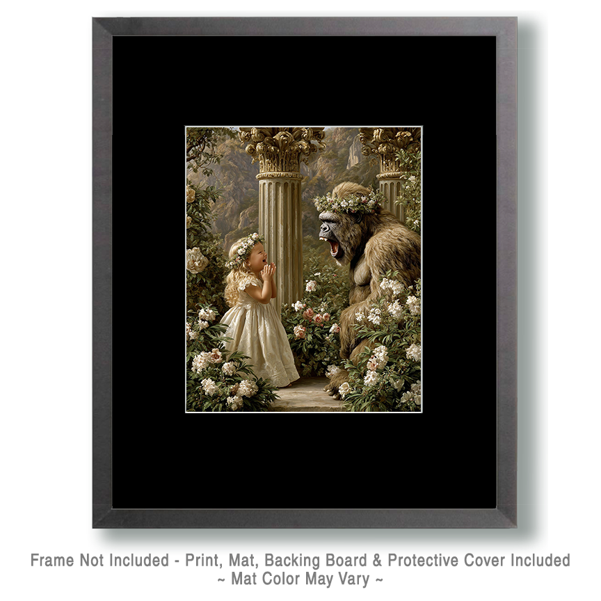 Young Fairy Telling Bigfoot a Funny Joke – Faires Art Print