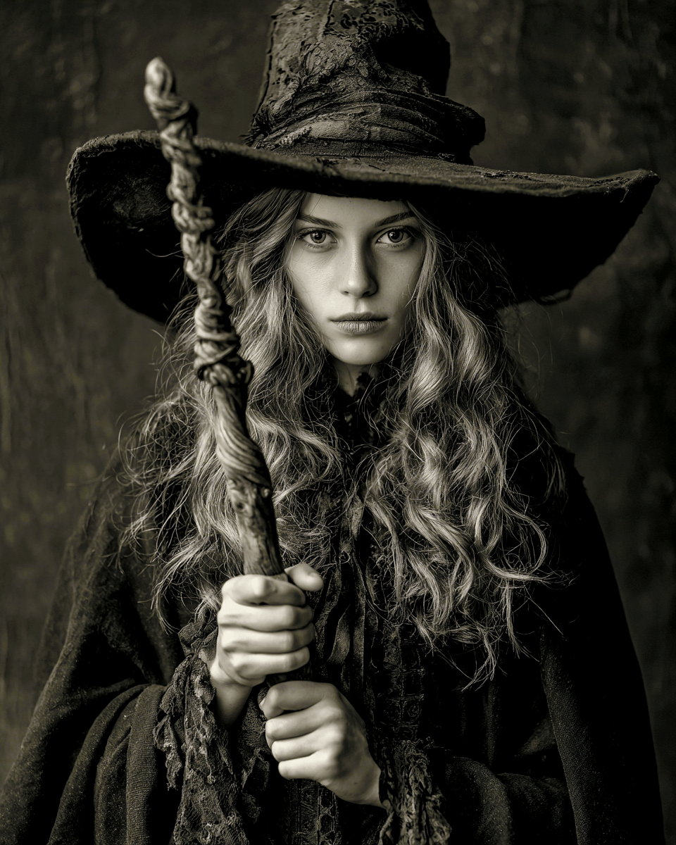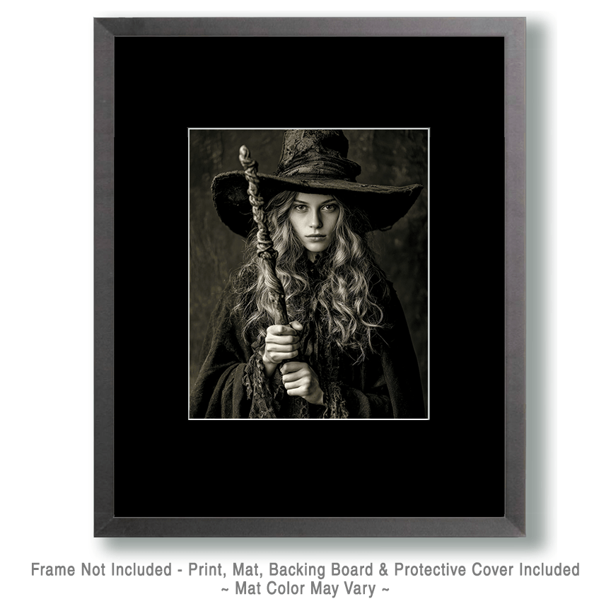 Young Witch with Grandma’s Staff Halloween Art Print – 8″x10″ Artwork